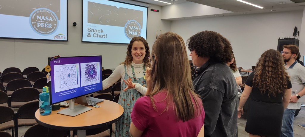 Many of our post-bacs had the opportunity to present the work that they’ve done at a professional conference, and NASA-PEER was there as well to support them! We cheered for our post-bacs in the audience of their talks or poster sessions, held office hours during the conferences for questions or pep talks, and hosted conference dinners to celebrate the excitement of a successful conference. Internally to Goddard, post-bacs were invited to present their research at Director’s Seminars, and a NASA-PEER organized Post-Bac Research Symposium, to help increase visibility for the amazing work they did to the wider Goddard community.